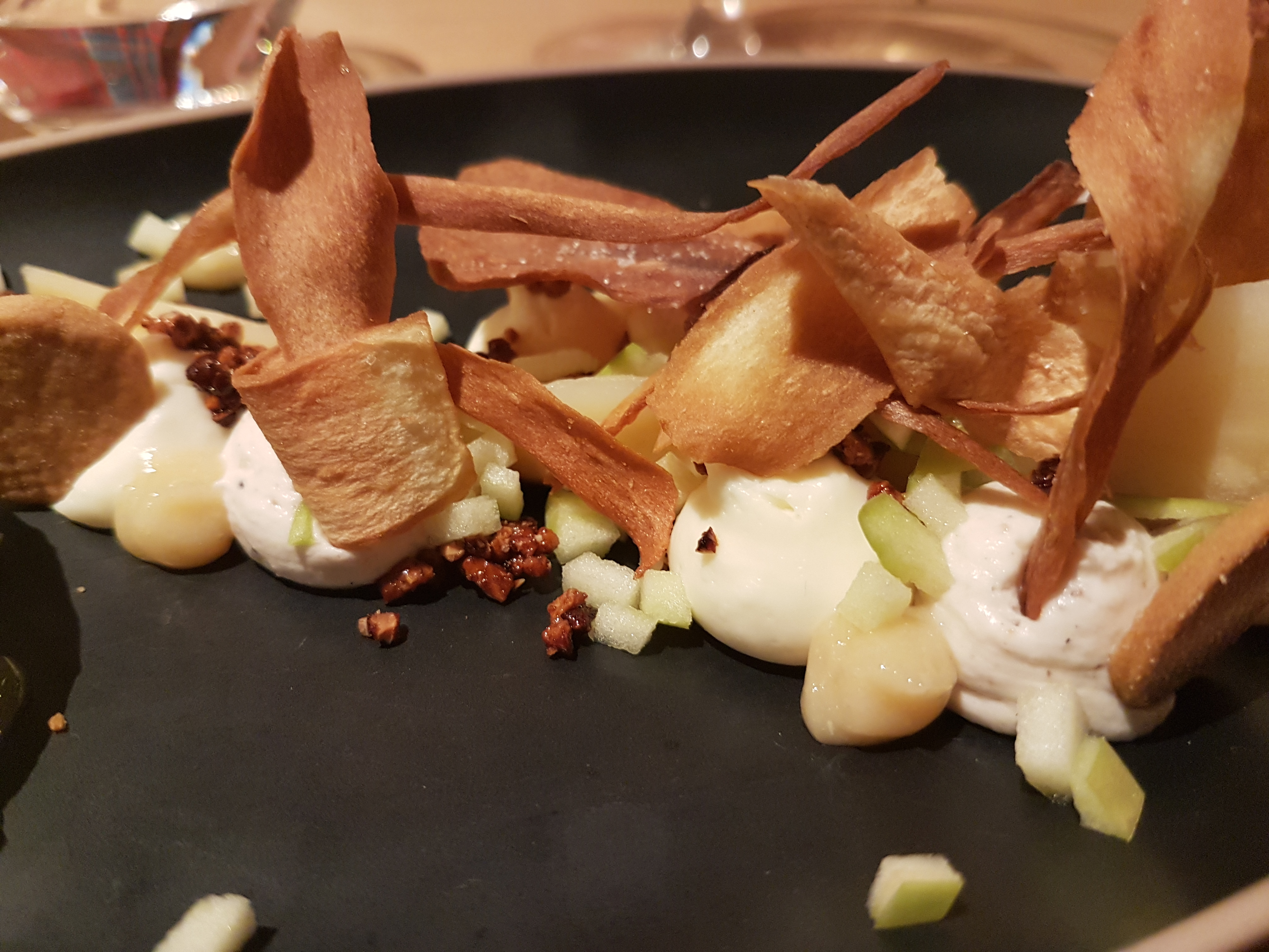 - dessert: panais – namelaka chocolat blanc – pommes grany smith – amandes