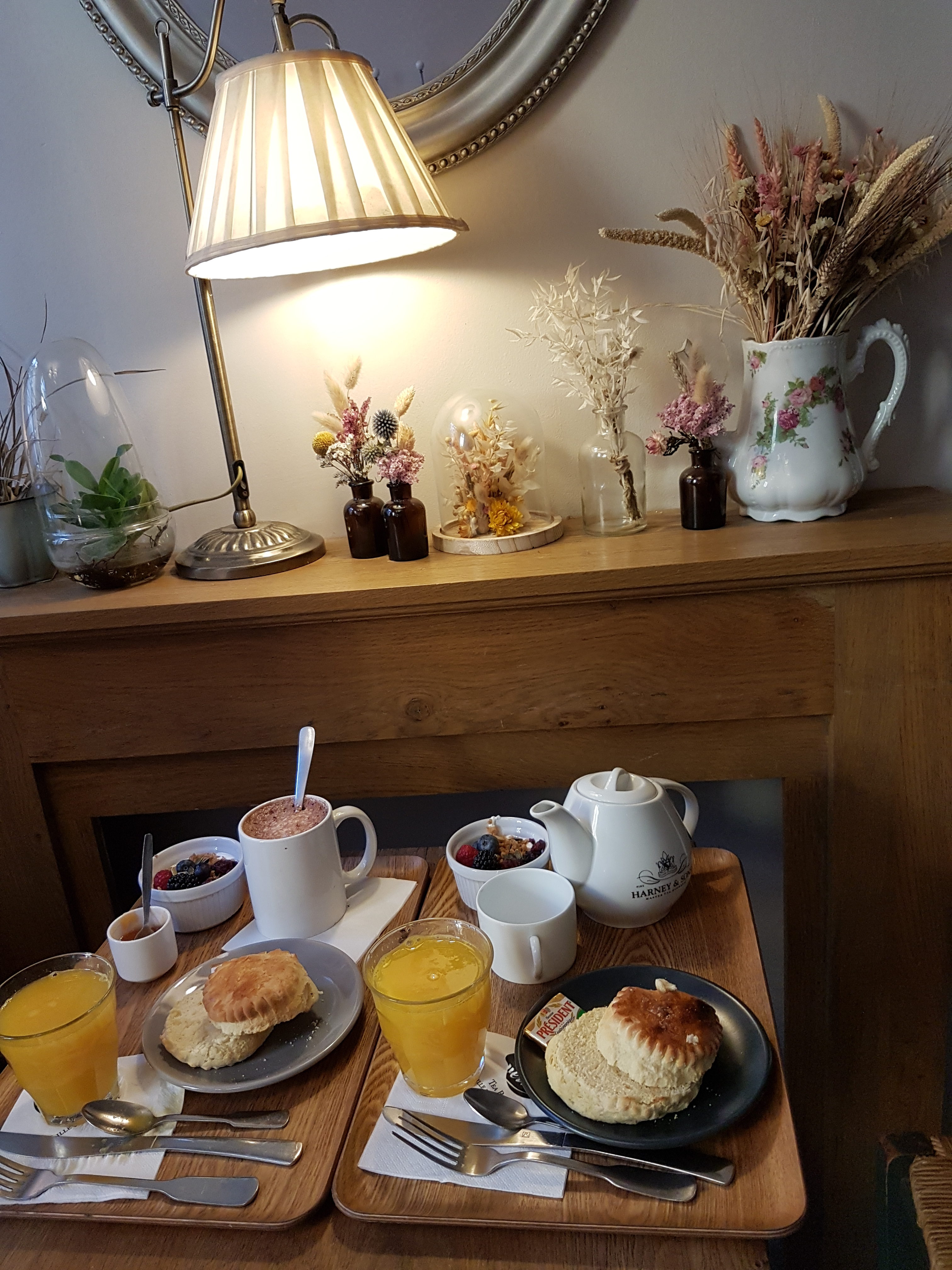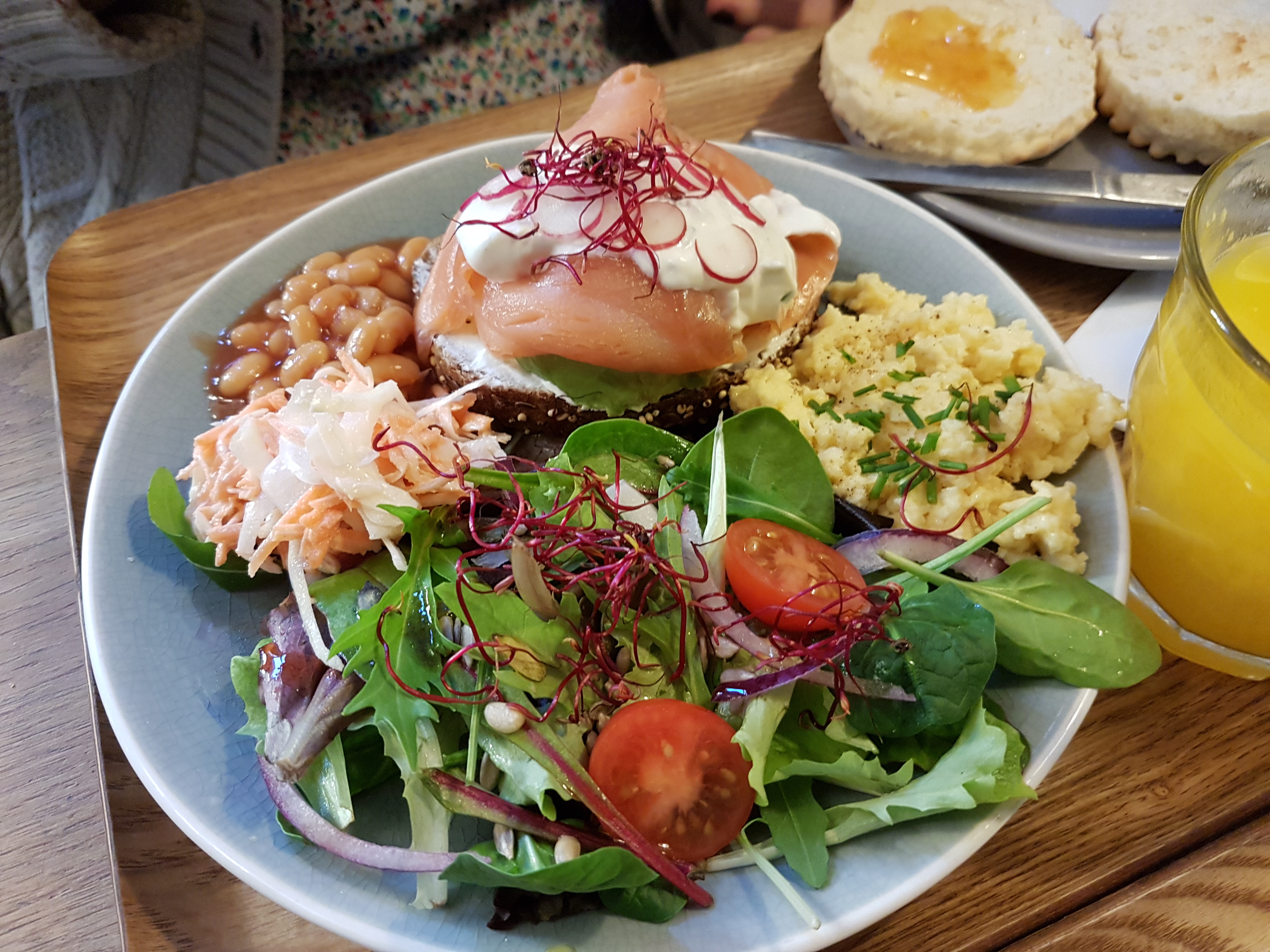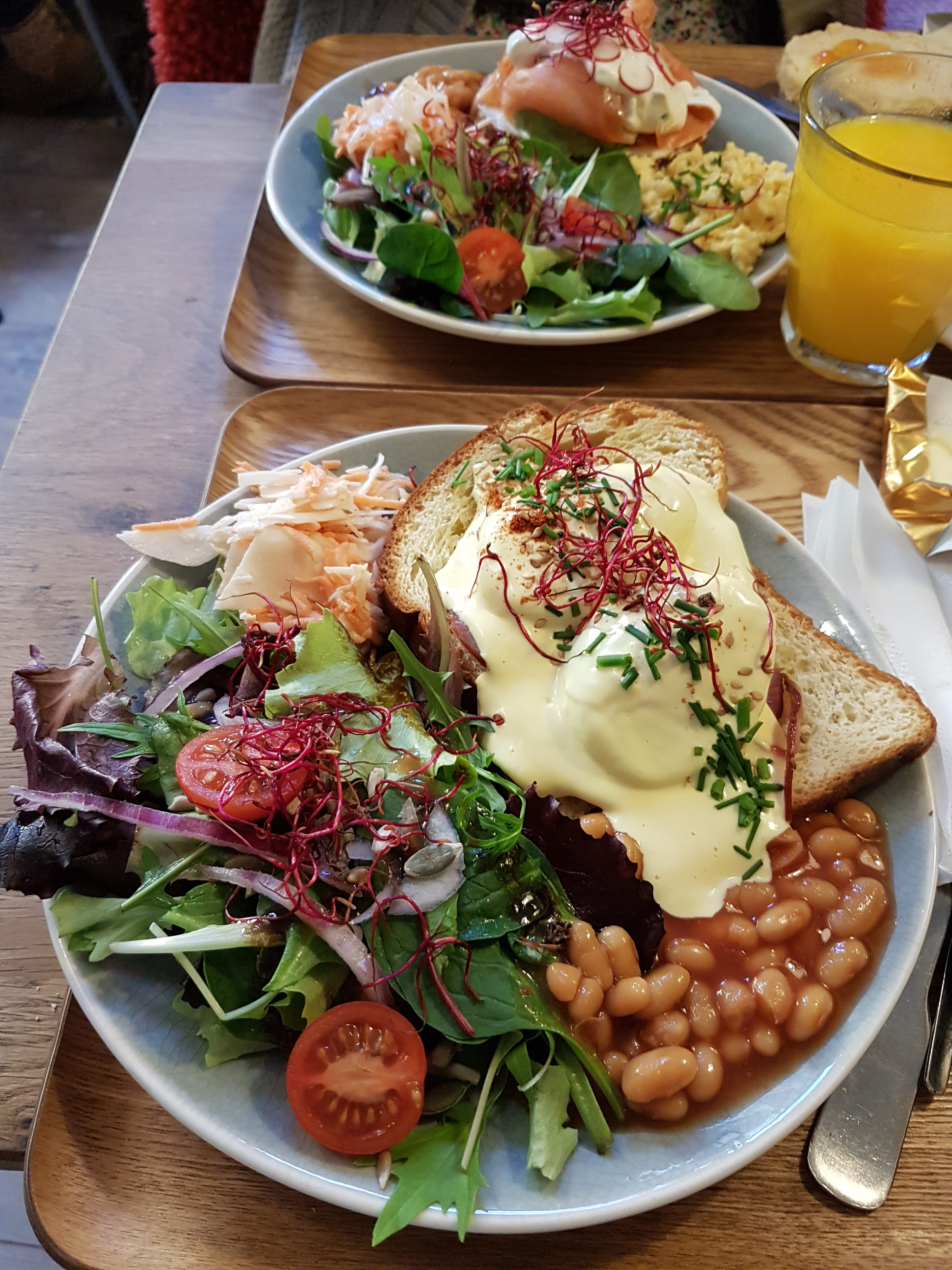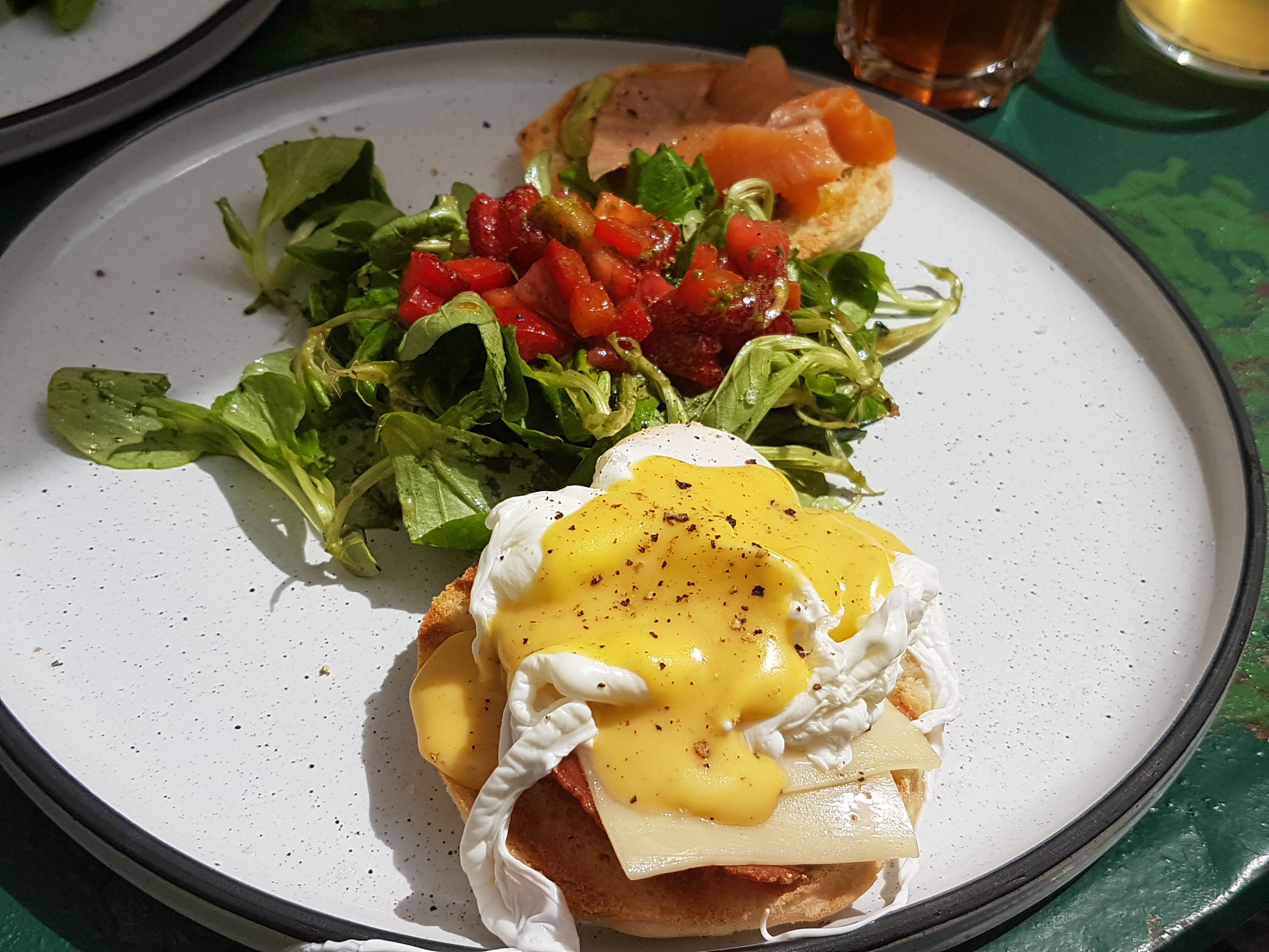 Leur carte de brunch est simple, c’est sur le thème British donc bien sûr il y a scones, confiture et œufs bénédicités mais pas seulement! Vous commencez avec les scones (+ confiture, beurre), une boisson chaude et une boisson froide. Ensuite vous choisissez votre assiette dans les choix du moment (œufs bénédictines, toasts au saumon ou muffin bacon par exemple) et vous terminez par un dessert au choix parmi une sélection.