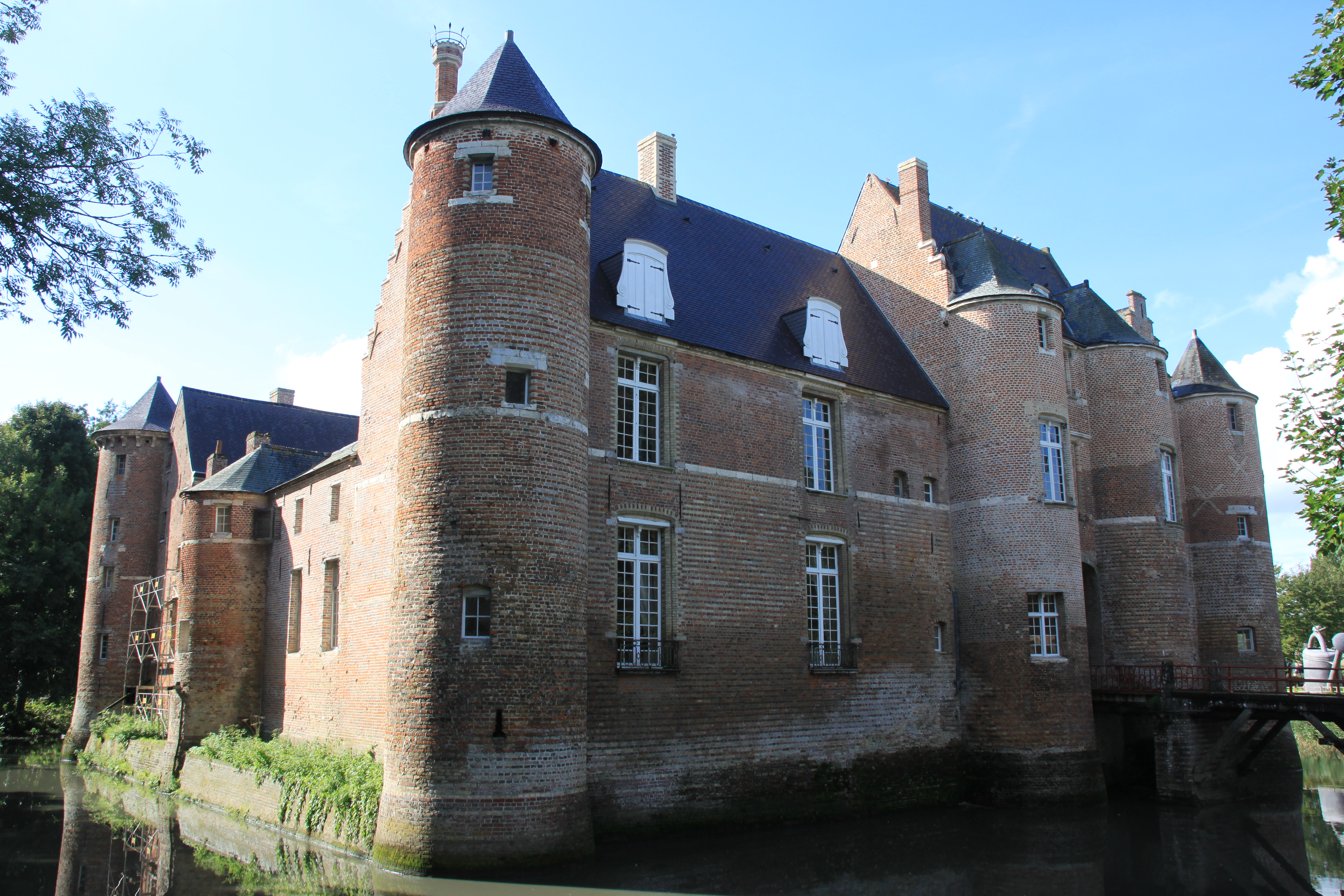 Et si vous allez à Bergues, n’hésitez pas à faire un petit crochet par le village d’Esquelbecq (10km de Bergues) vous y verrez un splendide château de style Renaissance (fin XVIème) , il est encore entouré de douves! Malheureusement vous ne pouvez pas visiter le château, uniquement les jardins qui l’entoure. Je vous conseille de vous renseigner au numéro de téléphone que vous trouverez ici pour la réouverture des jardins.